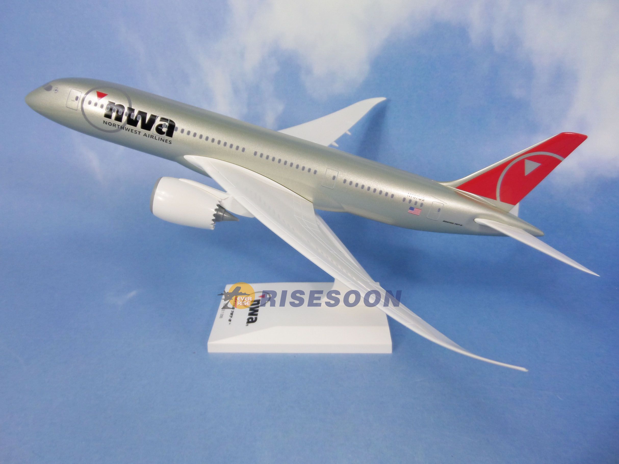 航空公司:西北航空 / Northwest Airlines 机 型:Boeing 787-8 注册号码:N787US 材 质:ABS实心 尺寸 ( 长x宽 ):285 x 310 mm 比 例:1/200 零 组 件:无机轮+涡轮叶片可转引擎+塑座